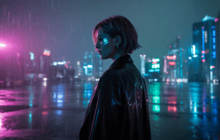 The city never slept, but its dreams were fragile. Neon lights flickered against rain-slick streets, casting fractured reflections on cracked glass and rusted steel. Above, drones hummed in patterned swarms, scanning for signs of rebellion or dissent. Every corner hid a secret; every shadow whispered of forgotten lives. Kaia’s boots echoed through narrow alleyways, her breath misting in the cold night air. A hood pulled low over her eyes, she moved with practiced stealth — a ghost in the endless cityscape.